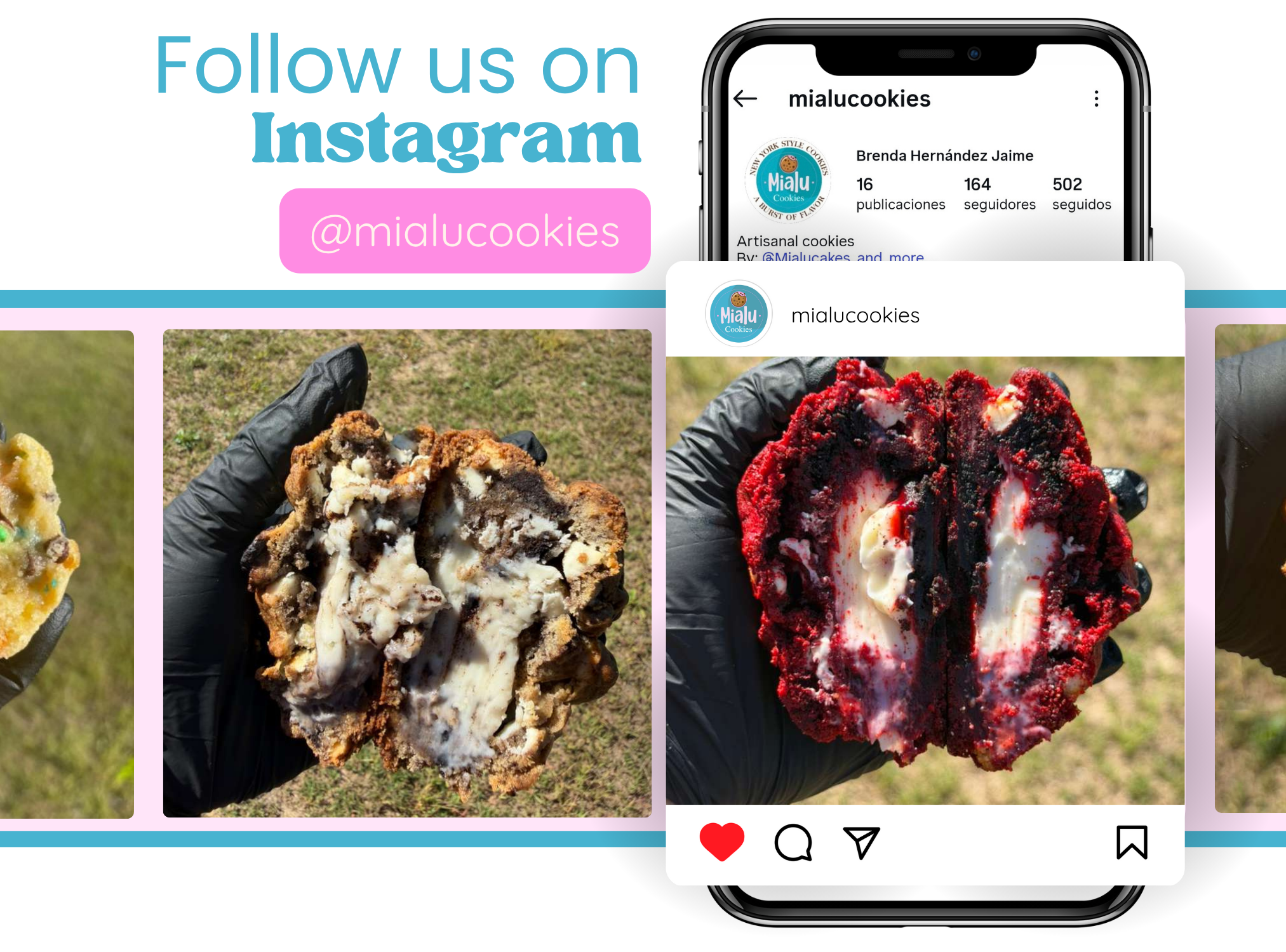Born from a passion for pastry and creativity, Mialu Cookies brings you handcrafted New York–style cookies made with premium ingredients and lots of love. Each cookie tells a story — designed to surprise, delight, and create sweet moments that make you smile with every bite.